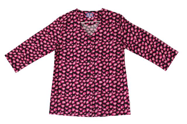 女性用 鯉口シャツ ヒョウ柄黒*ピンク 7分袖 サイズ:S・M・L・LL 素材:綿100%
