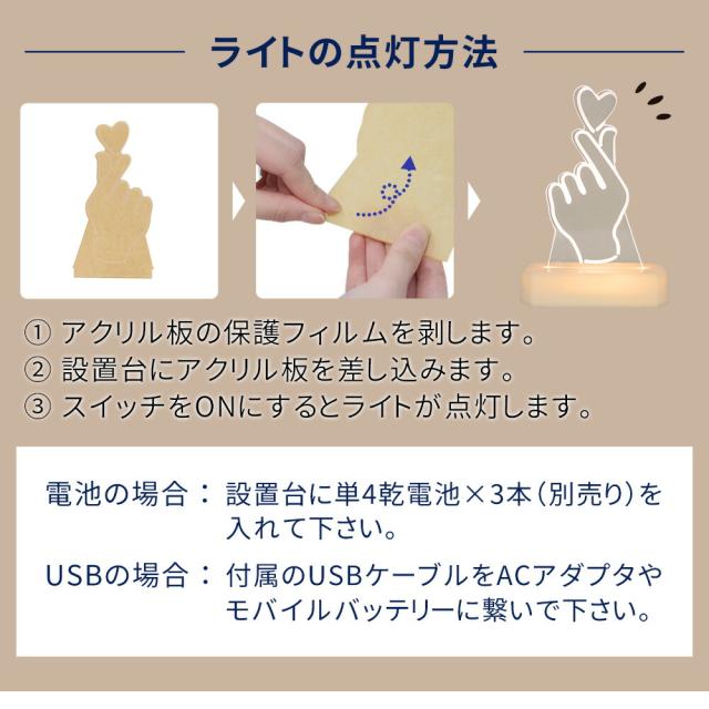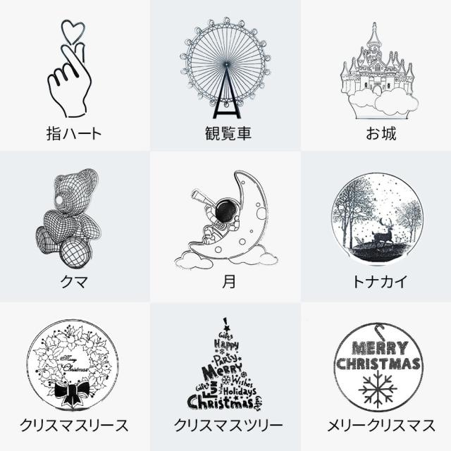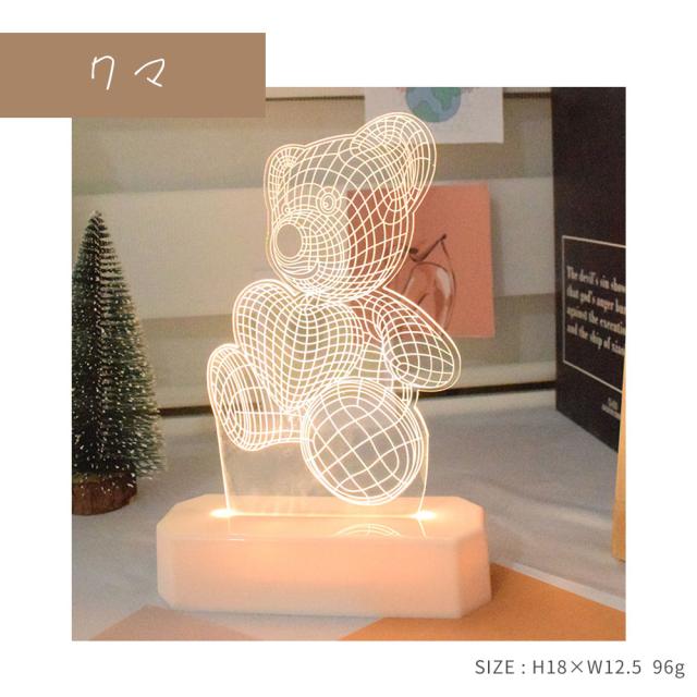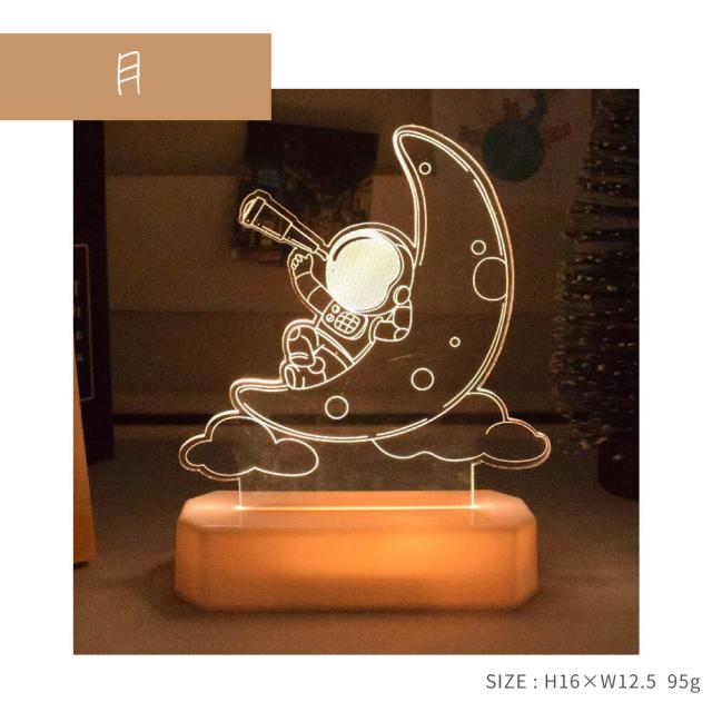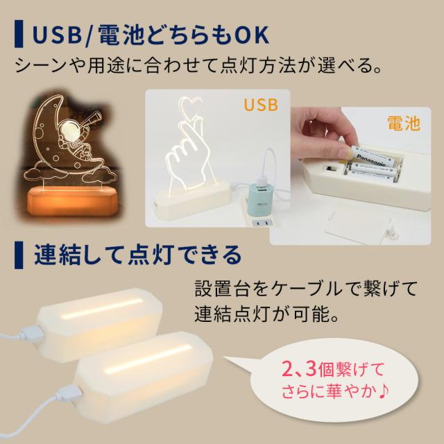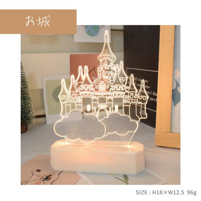 ナイトランプ/ベッドランプ/フロアランプ/立体ライト/LED/立体型/立体ライト/3Dライト/卓上ライト/卓上/コードレス/乾電池/充電/連結可能/連結/モチーフ/かわいい/寝室/ベッド/授乳/停電対策/防災対策/指ハート/観覧車/城/お城/クマ/月/宇宙/宇宙飛行士/トナカイ/クリスマスツリー/メリークリスマス/クリスマスリース/透明板/アクリル