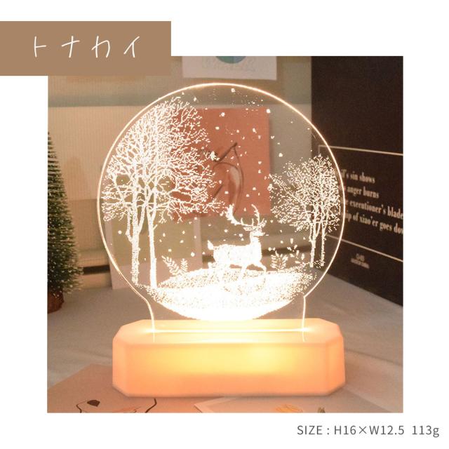 ナイトライト LEDライト ベッドライト 授乳ライト ランプ 立体 3D 間接照明 ライト 照明 充電式 電池式 USB 電池 アクリル板 透明 彫刻模様 クリスマス きれい おしゃれ 寝室 子ども部屋 ベッドサイド プレゼント TN-NTLT