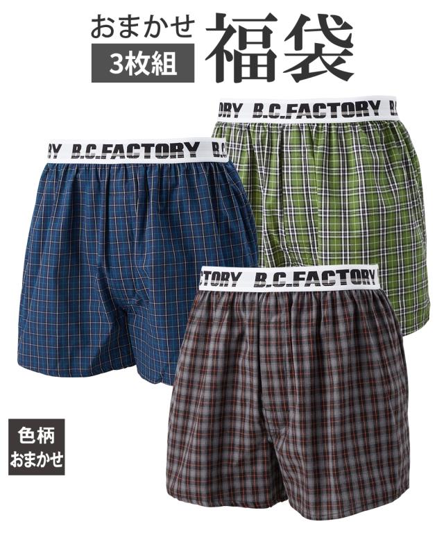 おまかせ福袋 綿100%前ボタン開きロゴゴムトランクス3枚組