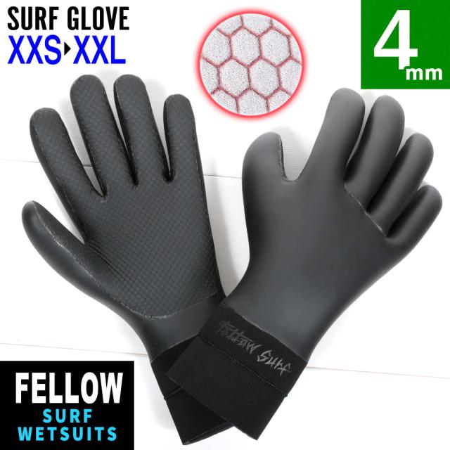 FELLOW サーフグローブ メンズ レディース 4mm スキン サーフィン 日本規格 裏起毛 防寒