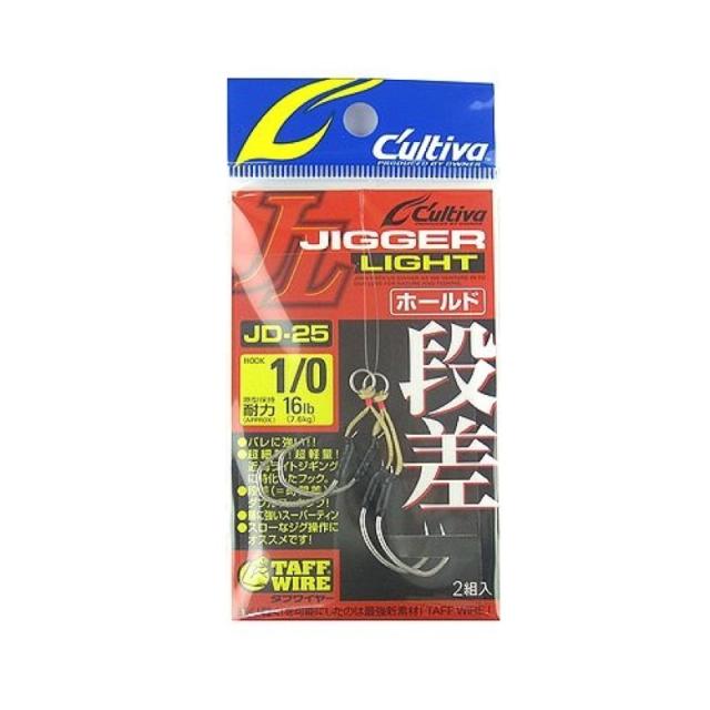 - フック:#1/0原型保持耐力(lb):16(7.6kg)入数(本):2対象魚:太刀魚 | ヒラマサ ブリ | マグロ GTジガーライト段差 ホールド JD-25 #1/0
