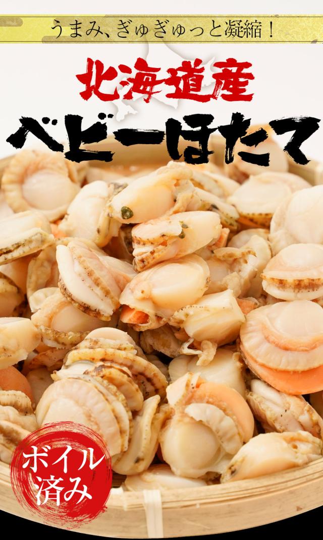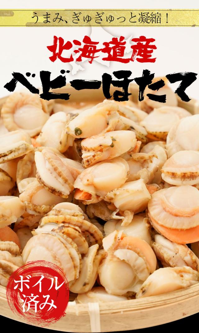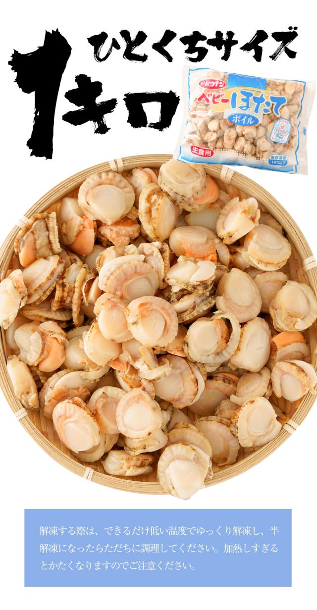 魚奏 ベビーほたて ボイル済み 1kg 1パック150〜200粒 送料無料 ホタテ 帆立 蒸し 仕送り 業務用 食品 おかず お弁当 お取り寄せ お歳暮