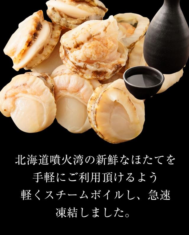 北海道噴火湾の新鮮なほたてを手軽にご利用いただけるよう軽くスチームボイルし、給装凍結しました。