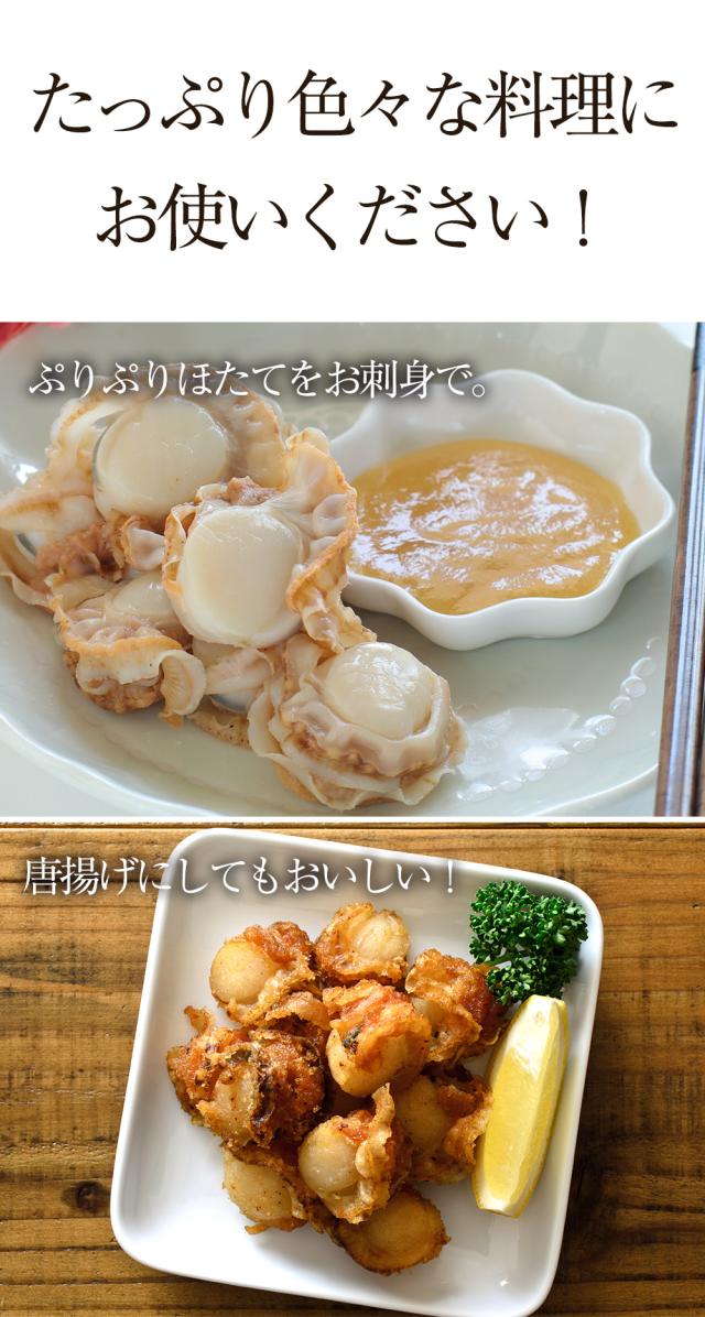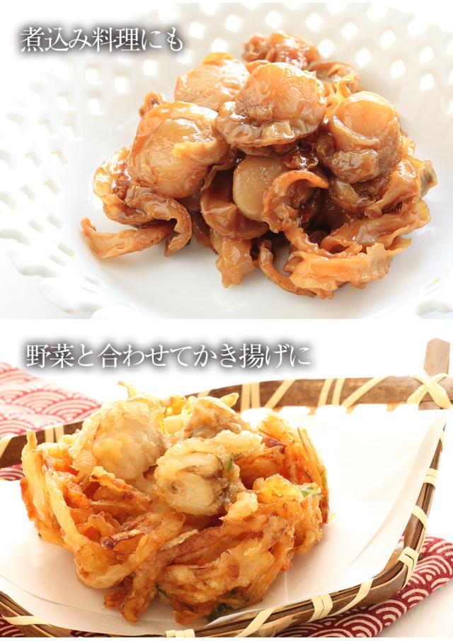 - 今回はお好み焼きに入れたりホタテご飯にしたりして頂いてます。