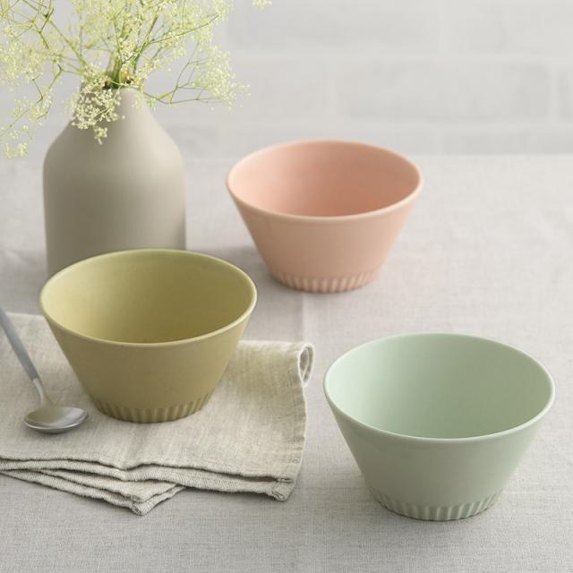 ボトムに象られたプリーツのような凹凸が特徴的なデザインのボウルは、ごはん用のお茶碗にもなり、幅広いお料理にお使いいただけます。同シリーズのプレートMとの組み合わせは朝食や軽めのランチにぴったりです。