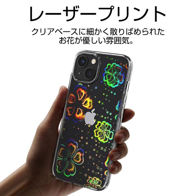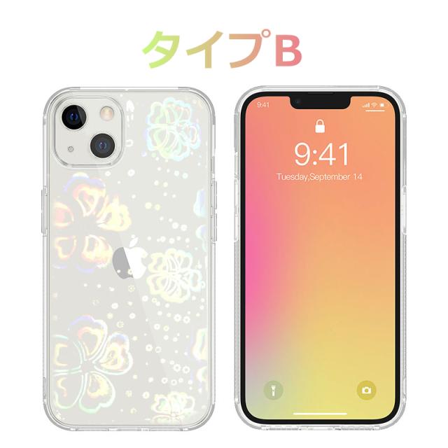 クリアベースに細かく散りばめられたお花とのハート模様が優しい雰囲気。清潔感があり爽やかなスマホケース。シンプルで飽きのこないデザイン。