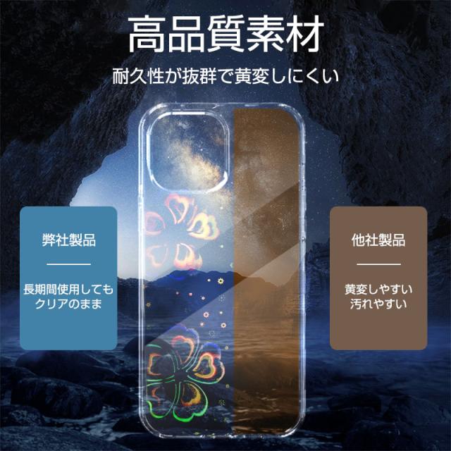 側面は柔らかく衝撃を吸収するTPU素材、背面は頑丈で高透過率なPC素材。一般的なハードコート済みのケースやクリアケースよりも硬い、擦り傷に強く、いつまでもキレイです。この2種類の素材を組み合わせることによって不意な落下や、傷から端末をタフに守ります。