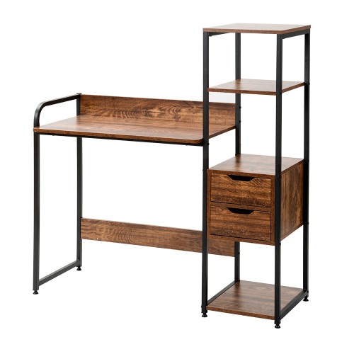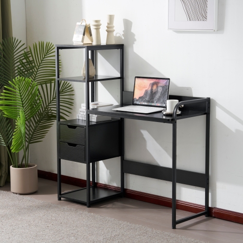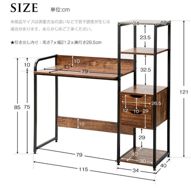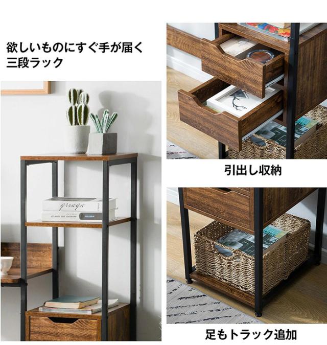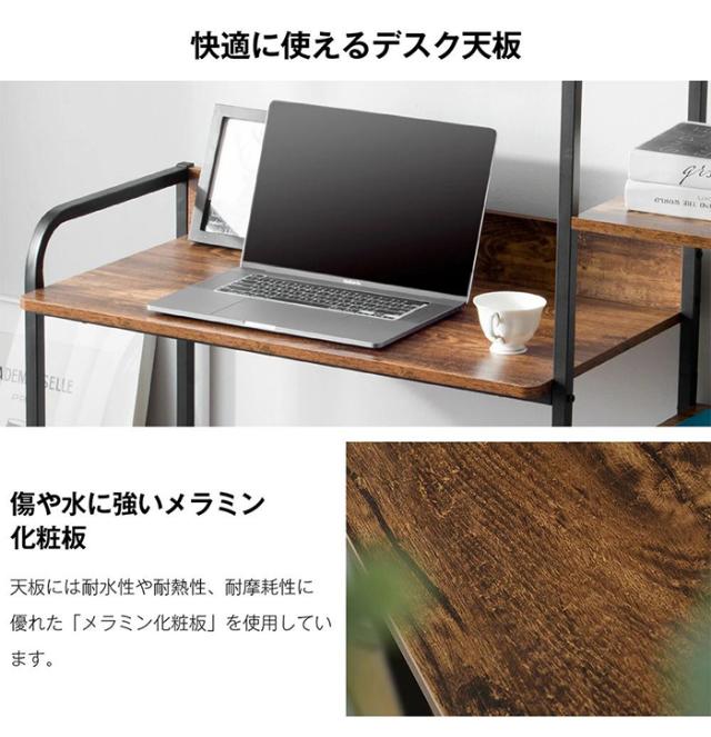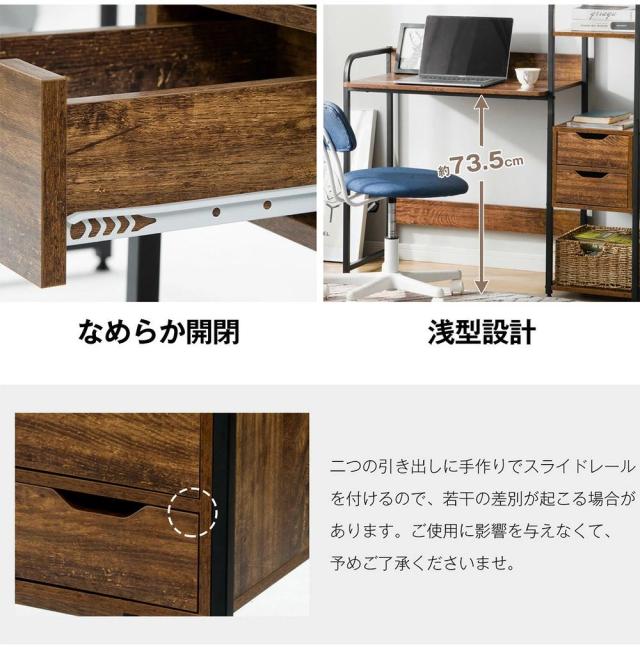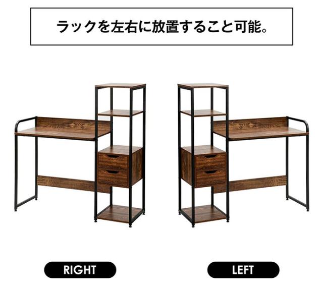 「クーポン配布中」パソコンデスク オフィスデスク ワークデスク 収納棚付き 引き出し付き 幅79cm 3段シェルフ付 収納台 学習デスク 本収納 収納ラック 左右入替可能 省スペース ハイタイプ PCデスク 学習机 勉強机 木製 おしゃれ テレワーク 在宅勤務