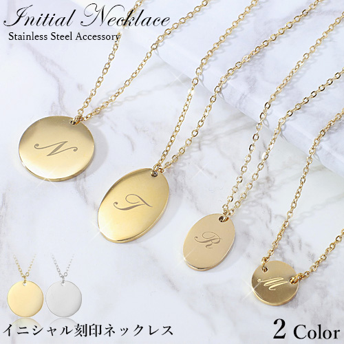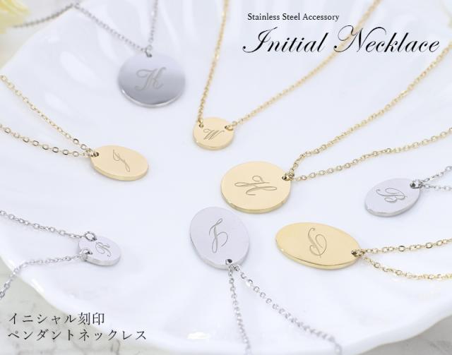 低アレルギー コイン イニシャルネックレス 名入れ ペンダントネックレス ジュエリー イニシャル刻印 オーダー 大人カジュアル 上品