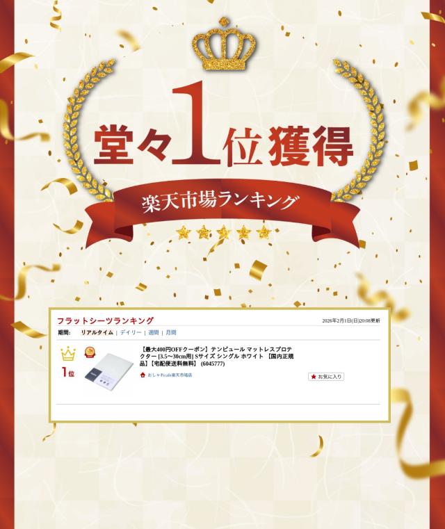 【楽天ランキング1位】テンピュール マットレスプロテクター Sサイズ シングル ホワイト[送料無料](6045777)