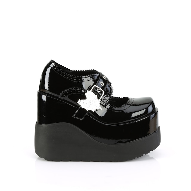 Demonia(デモニア) VOID-38 ウェッジソール厚底パンプス スパイダーウェブバックル ギザギザエッジ エナメル黒◆取り寄せ