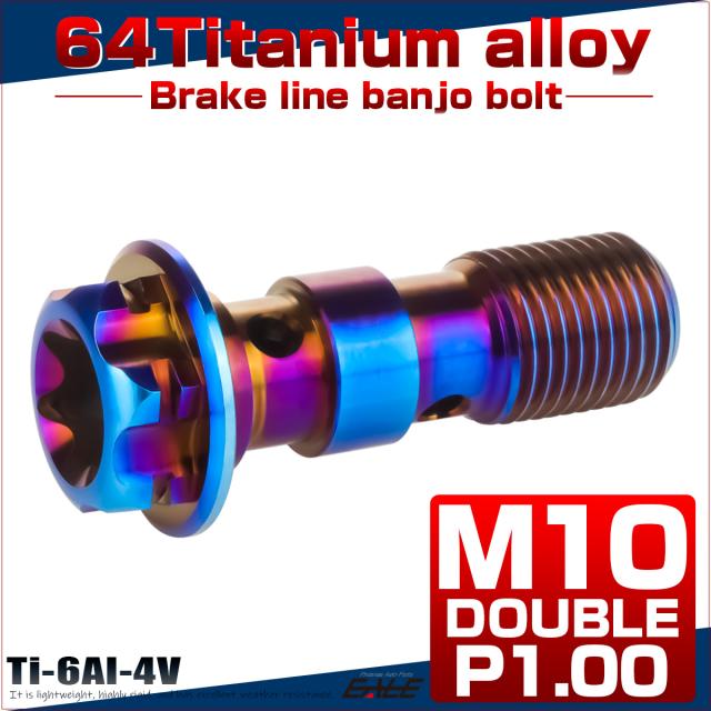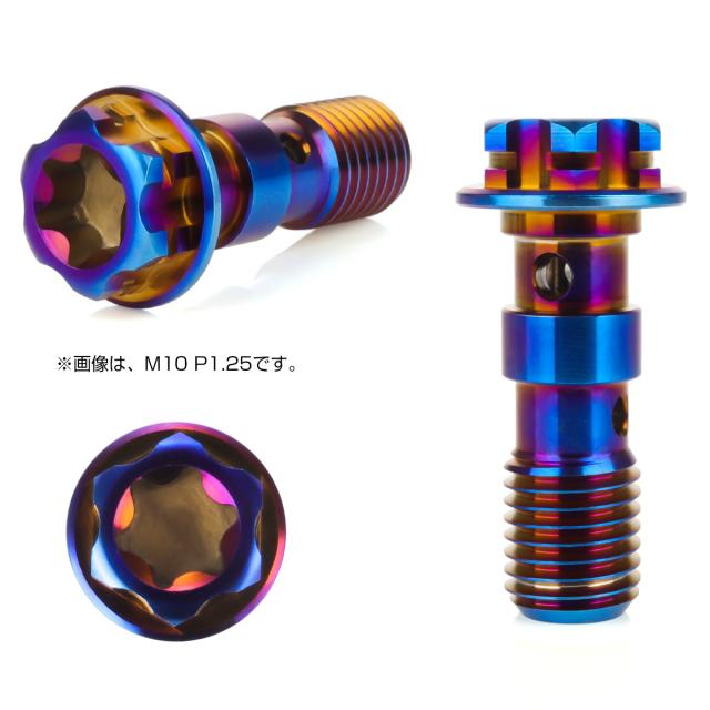 64チタン製 バンジョーボルト ブレーキライン M10 P1.00 トルクス穴 ダブル デザインボルト 焼きチタン JA1112