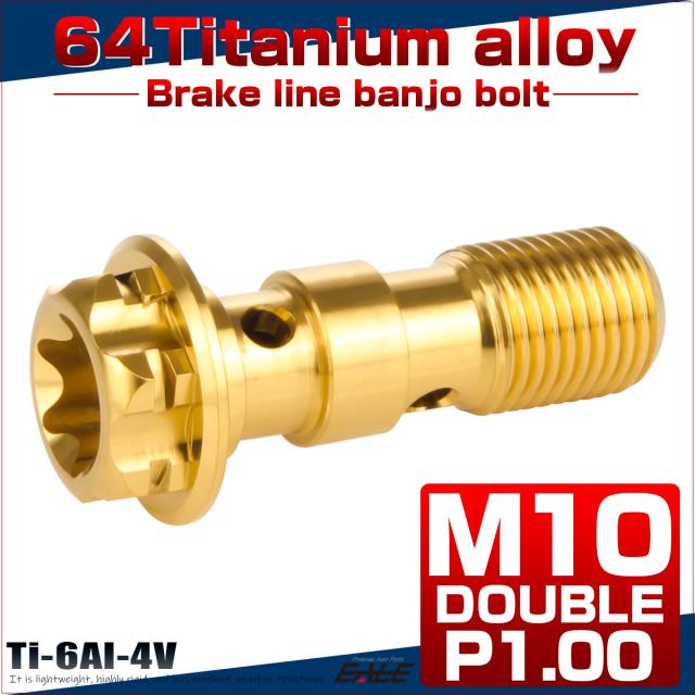 64チタン製 バンジョーボルト ブレーキライン M10 P1.00 トルクス穴 ダブル デザインボルト ゴールド JA1113