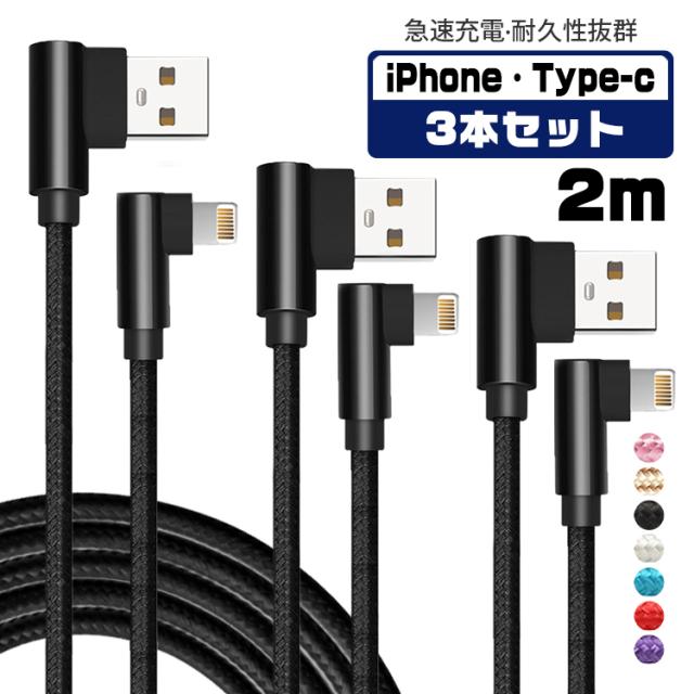 【2M&3本セット】充電器iphoneケーブル ライトニングケーブル タイプc ケーブル iphone充電 ケーブル lightningケーブル L字型 iPhone13 mini Pro Max iPhone12 mini Pro Max 対応 1000円 ぽっきり 送料無料