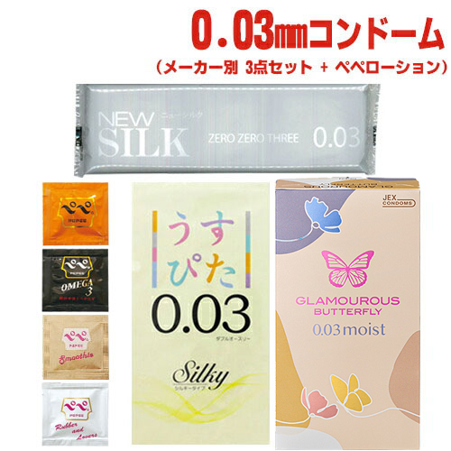 | 製品名 | 薄さ0.03mmコンドーム!有名メーカー別使い比べ!3箱セット + 選べるペペローションおまけ付き! (condom 避妊具 スキン ゴム 避孕套 安全套 套套 0.03 003 ゼロゼロスリー ZEROZEROTHREE ダブルオースリー USU-PITA MOIST GLAMOUROUS BUTTERFLY ぺぺ ペペ ローション ゼリー 潤滑) |