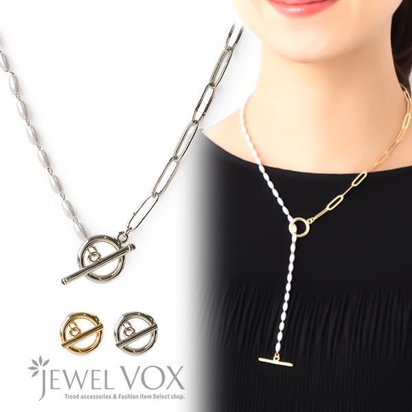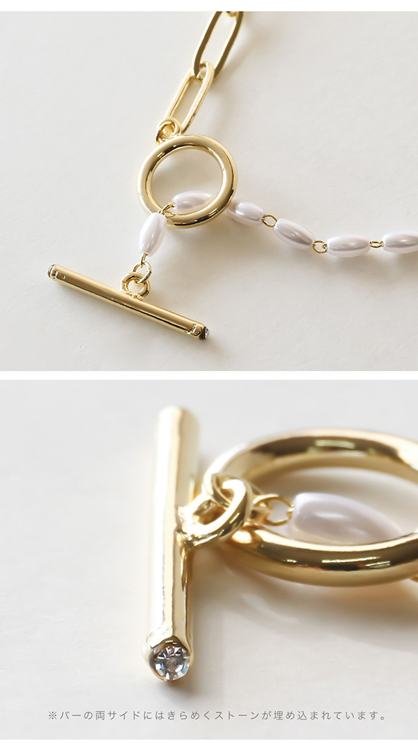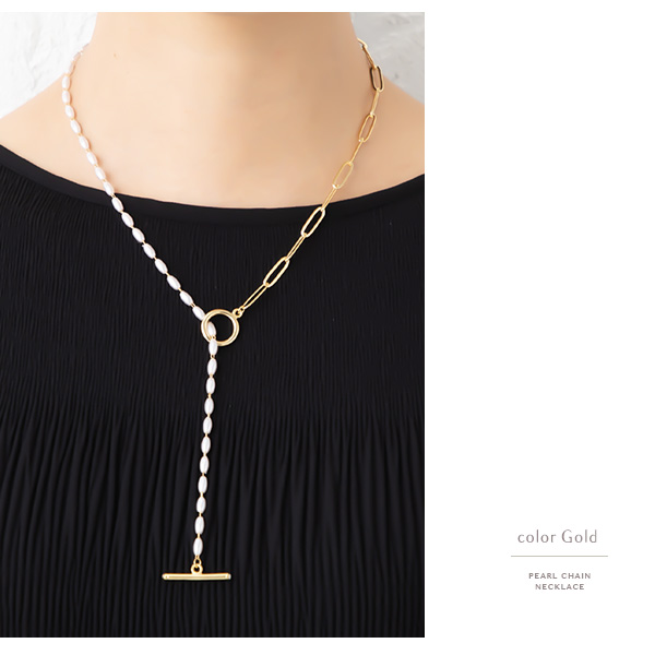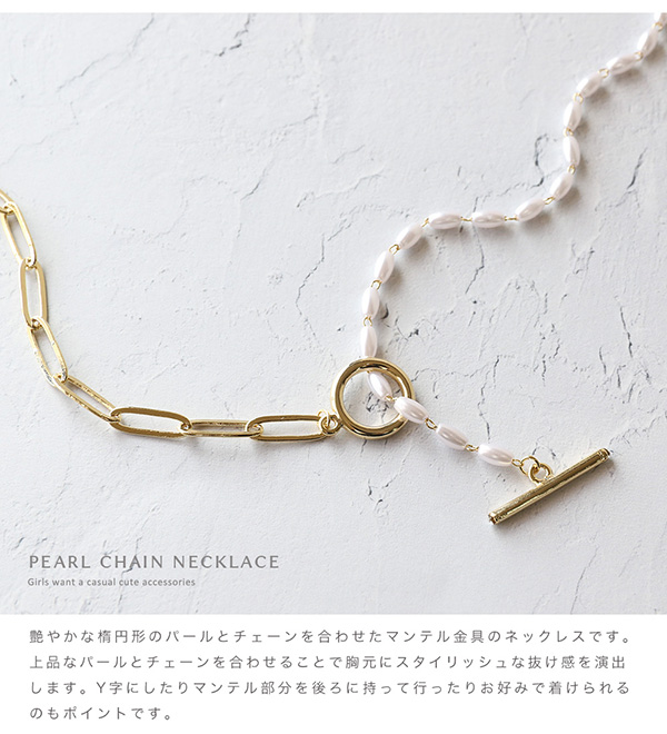 ネックレス レディース 金属アレルギー対応 ショートネックレス マンテル パール チェーン ショート 18Kコーティング ニッケルフリー ワンポイント デイリー カジュアル Y字 30代 40代 50代 ブランド