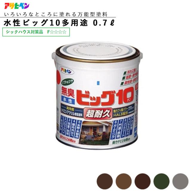 [三太郎の日P10倍!] 水性ビッグ10 多用途 0.7L スモーキーダーク系 水性塗料 リフォーム リノベーション リメイク DIY 補修 壁 外壁 ペンキ 屋外 壁紙 家 天井 塗装 塗料 室内壁塗料 模様替え ペイント アサヒペン