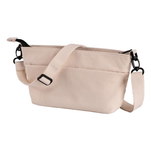 素材は丈夫なコットンキャンバス地を使用。普段使いに便利なちょうどいいサイズ感で、外出時に持ち歩きたいアイテムがすっきり収納出来ます。