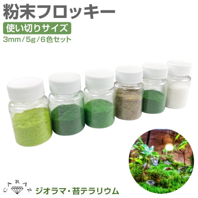 ジオラマ 草 地面 雪 ジオラマパウダー 人工芝生パウダー フロッキー粉末 粉ふるい 苔テラリウム レイアウト 情景製作 背景用 地面 フロッキーコーティング ネイル 粉末フロッキー 3mm/5g 6色セット JM-F5G 送料無料 翌日配達 クリスマスプレゼント レディース
