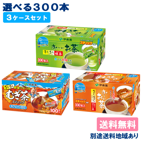 【伊藤園】お〜いお茶 さらさら 緑茶 ほうじ茶 健康ミネラルむぎ茶 粉末 選べる2ケースセット 0.8g x 300本 (100本入 x 3ケース) 緑茶 ほうじ茶 麦茶 スティック