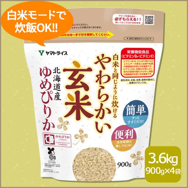 玄米 ゆめぴりか 白米と同じように炊けるやわらかい玄米 900g×4袋 令和7年産 北海道・沖縄は送料900円