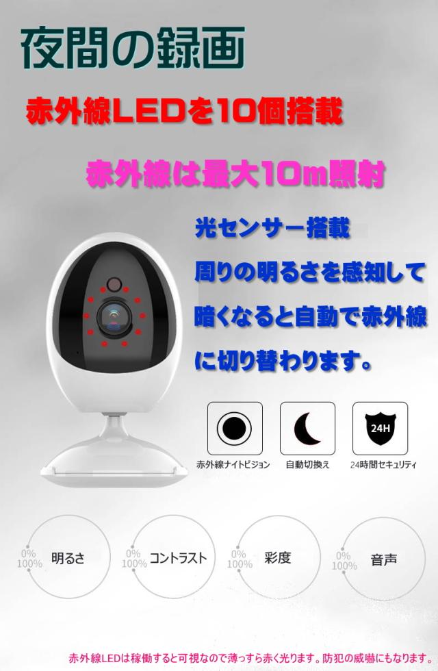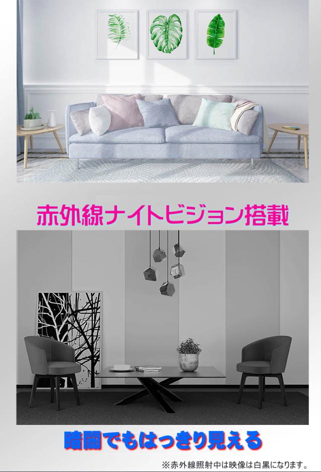 【赤外線ナイトビジョン】暗闇でも赤外線LED(10個搭載)で照射。はっきり見えます☆※赤外線使用中は白黒画像になります。※赤外線LEDは可視なのでほんのり赤く光ります。