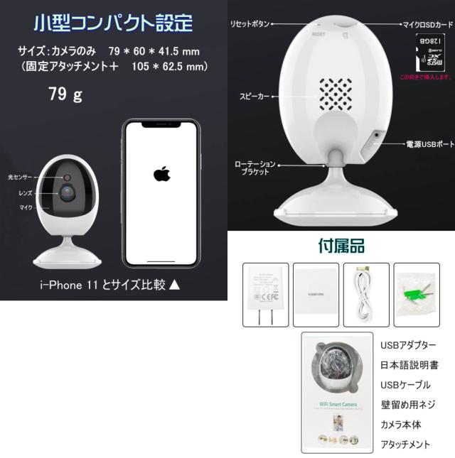 お洒落で可愛いコンパクトホームネットワーク見守りWi-Fi防犯カメラ