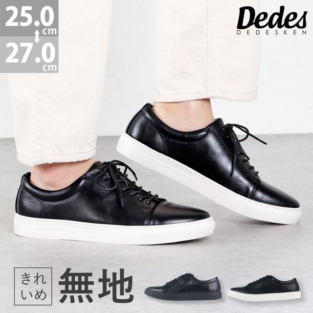 スニーカー メンズ ローカット 白 黒 レースアップ 3cmソール 幅広 3E 履きやすい 歩きやすい No.5192 25-27cm 合成皮革 レザー 無地 シンプル ブラック ホワイト おしゃれ カジュアル Dedes デデス 紐 きれいめ 革 紐靴 丸紐 大人カジュアル