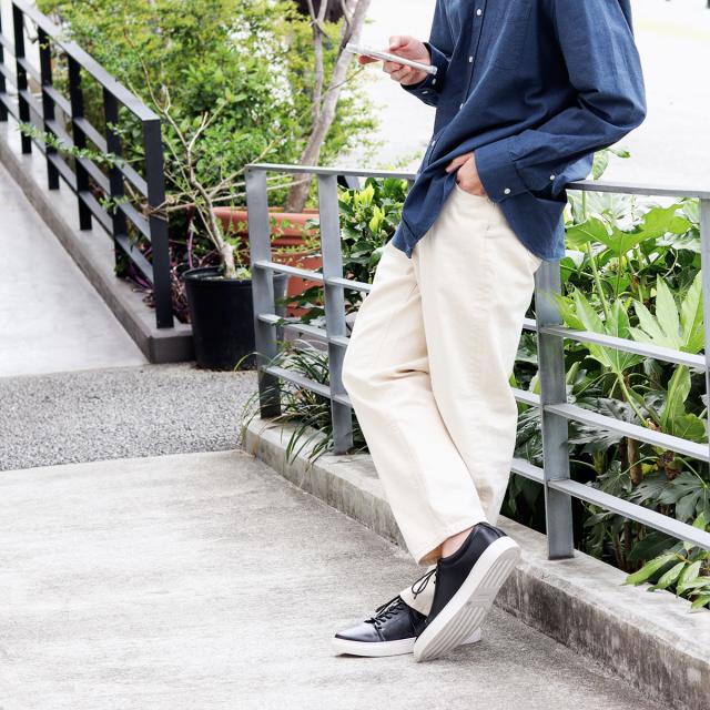 丸紐のシューレースを使用し、よりきれいめな印象に。