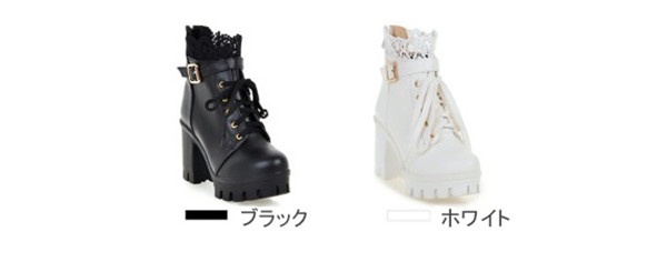 ブーツ レディース ショートブーツ 編み上げ レースアップ 靴 レース かわいい ガーリー ロリータ 太ヒール 大きいサイズ 厚底 ブーツ おしゃれ 美脚 ファッション シューズ ホワイト ブラック 黒 白 シンプル コスプレ 女の子 ファッション