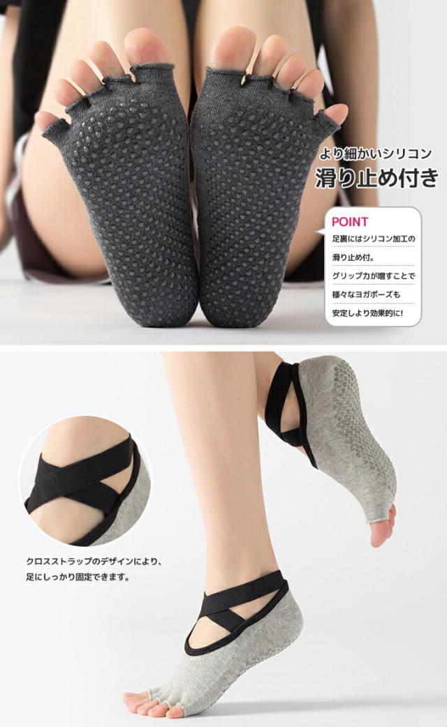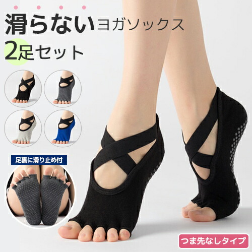 ヨガソックス 5本指 2足セット 滑り止め つま先なし 22〜25cm クロスデザイン 滑り止め付 4カラー かわいい 靴下 ヨガウェア ピラティス ホットヨガ ウェア くつした レディース シンプル 人気 おすすめ おしゃれ
