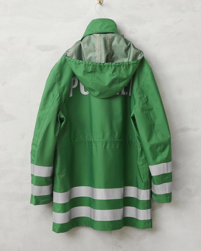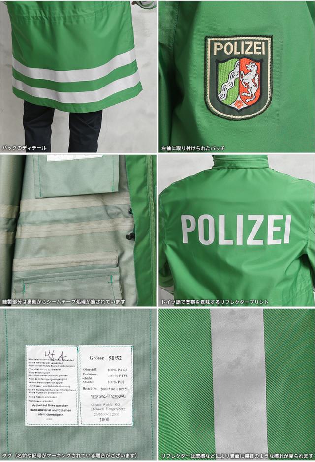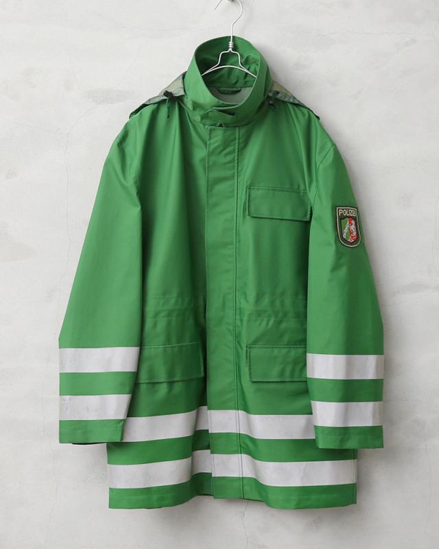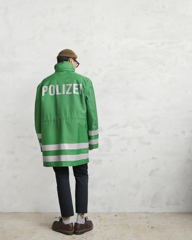 ドイツの警察が使用する本物の透湿防水タイプの機能性に優れたジャケットが入荷しました。鮮やかなグリーンにリフレクターがあしらわれた存在感抜群のポリスジャケットです。本物にしか出せない雰囲気があり機能性、デザイン性に優れたポリスジャケットです。