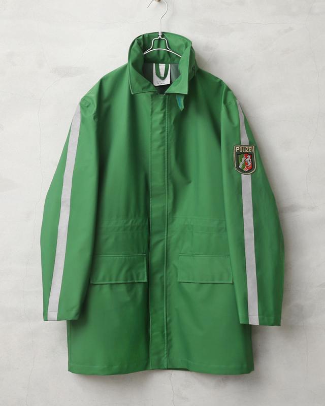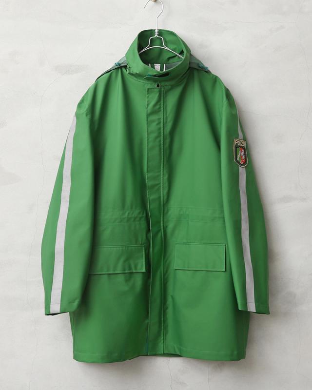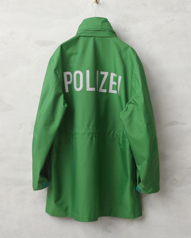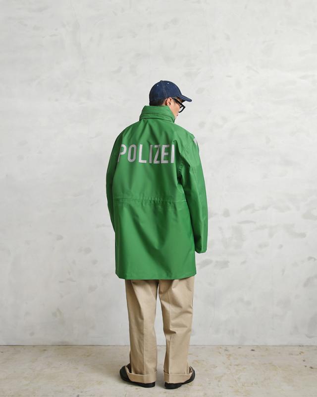 ドイツの警察が使用する本物の透湿防水タイプの機能性に優れたジャケットが入荷しました。鮮やかなグリーンにリフレクターがあしらわれた存在感抜群のポリスジャケットです。リフレクターは車のヘッドライトなどを反射しますので夜間の外出時でも活躍する実用的なデザインです。バックにはドイツ警察を意味する“POLIZEI”というロゴにもリフレクタープリントが使用されています。本物にしか出せない雰囲気があり機能性、デザイン性に優れたポリスジャケットです。