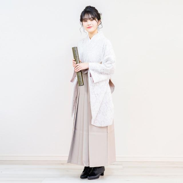 二尺袖 着物 袴 フルセット レンタル レース着物 個性的 オシャレデザインで目立つ くすみカラー 透け感 往復送料無料 Mサイズ ブーツ選択可 】ピンクホワイト ブラウン系