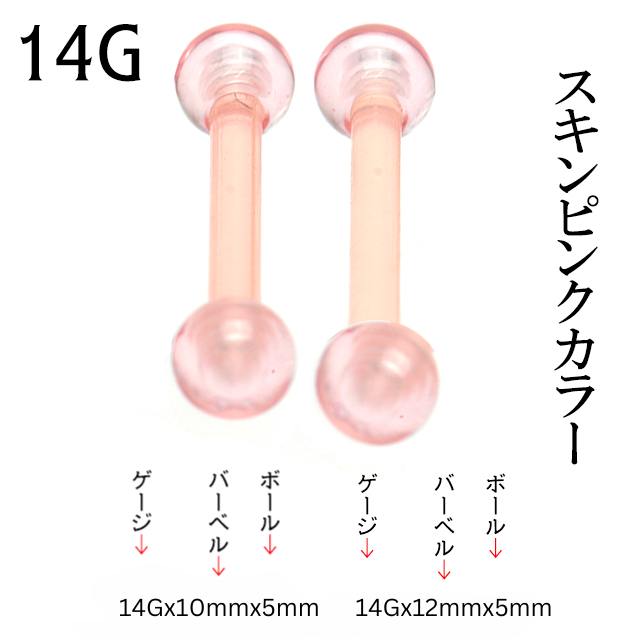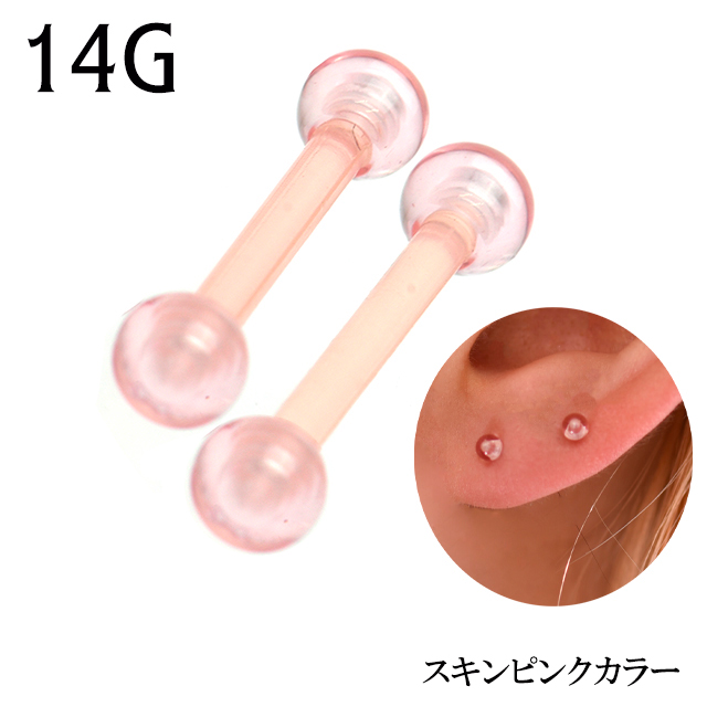 肌に近い色 スキンピンク 14G ボディピアス イヤーロブ 軟骨ピアス 舌ピアス 金属アレルギー対応 シークレットピアス ストレートピアス 肌色 透明ピアス つけっぱなし 便利アイテム