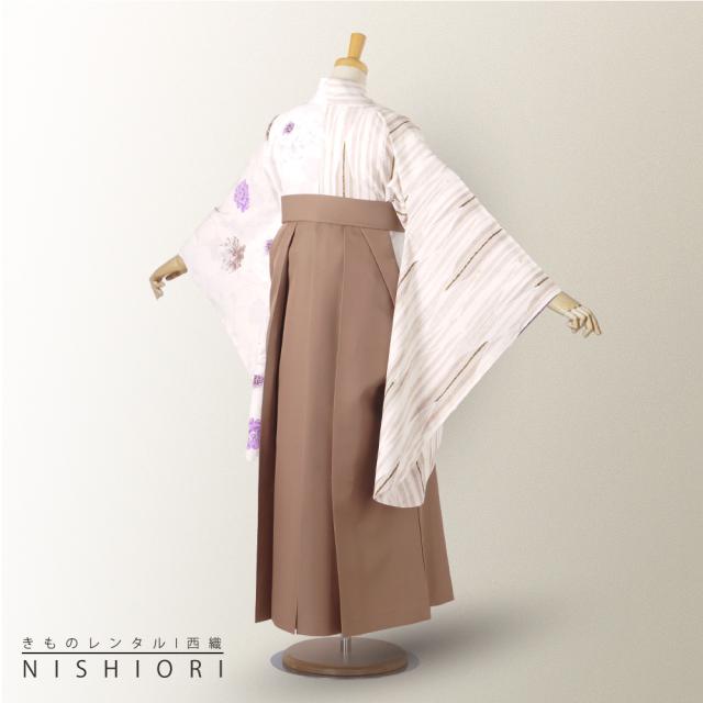 レンタル JAPAN STYLE 二尺袖 着物 袴 レンタル フルセット ブランド 往復送料無料 ブーツ選択可 リボン オフホワイト ベージュ 左右非対称 牡丹 刺繍 くすみカラー