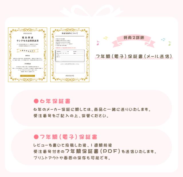 着後レビューを頂いた後、保証期間は7年に延長し、お名前スタンプ5点セット無料贈る(★商品着後、1週間以内弊店にご連絡頂いた場合)