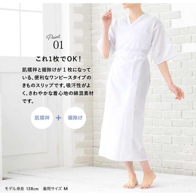 肌襦袢 肌襦袢ワンピース 着物スリップ 和装 肌着 レディース 白 通年 浴衣 和装下着 補正 裾除け きものスリップ 着付け小物 和装小物 S M L LL メール便 送料無料