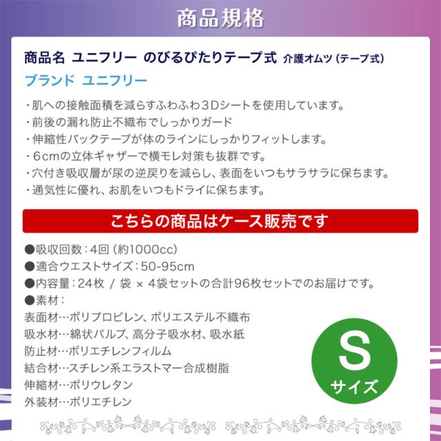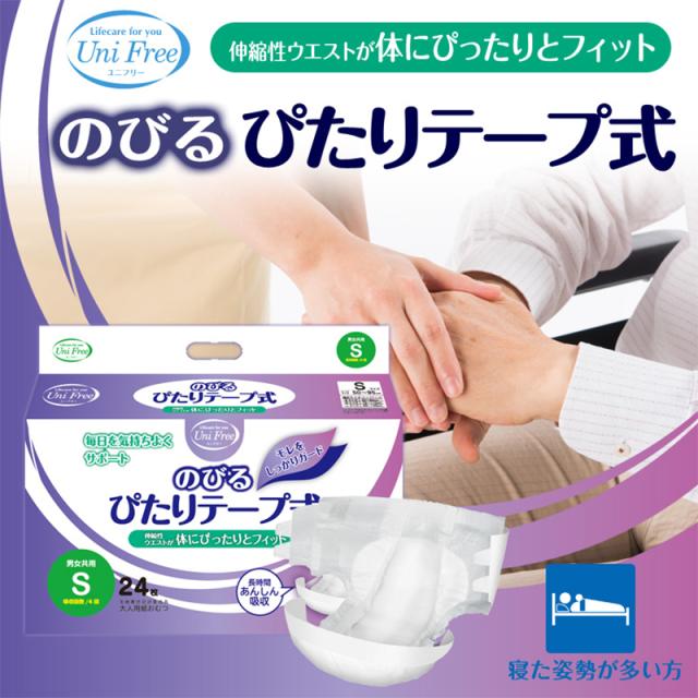 のびるぴたり テープ式 おむつ S M L 24枚 22枚 19枚 4袋 96枚 88枚 76枚 尿とりパッド 尿取りパット 尿取りパッド 男性用 女性用 全部 80cc 大人用 紙おむつ 紙オムツ s m l テープ パンツ ユニフリー unifree