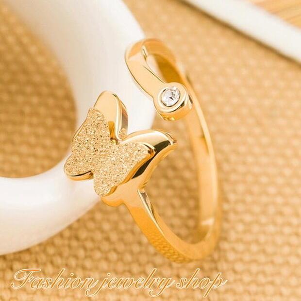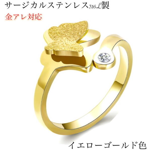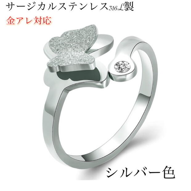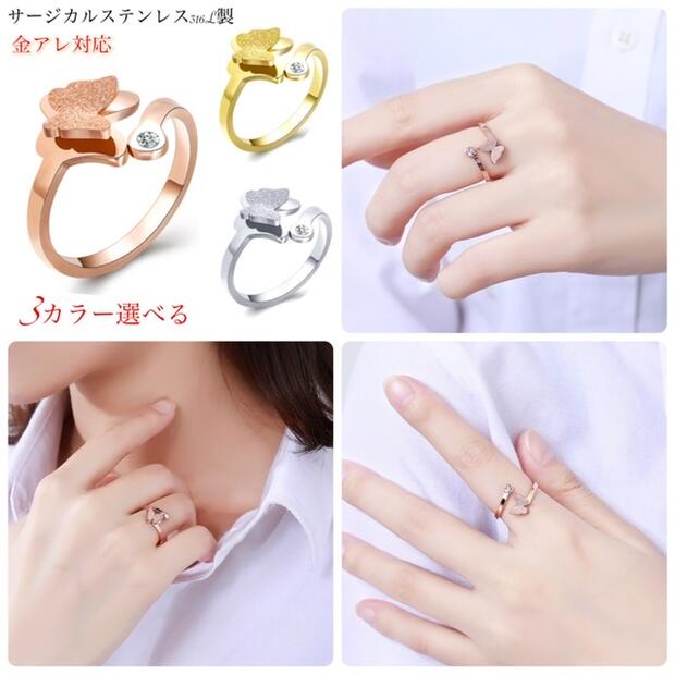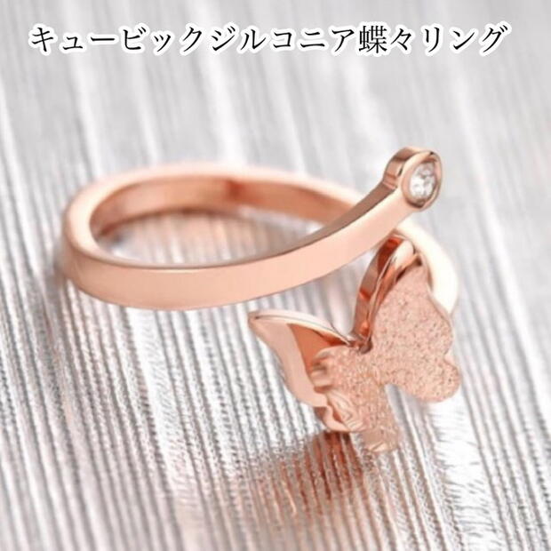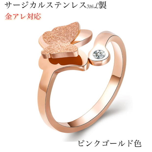 サージカルステンレス316L製 CZダイヤ(キュービック・ジルコニア)蝶々リング 金属アレルギー対応 レディース リング 指輪 18K ピンクゴールド ゴールド シルバー ステンレスリング 18金 コーティング 蝶々 バタフライ 人気 カジュアル かわいい おしゃれ プレゼント