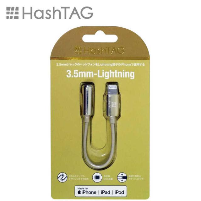 HASHTAG イヤホン端子 変換アダプター 3.5mmジャック - Lightningケーブル(12cm)ゴールド HT-AAOLH1GD