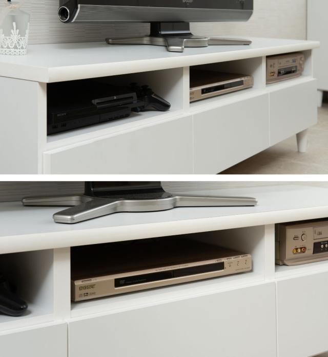 上部のオープン収納部分には、DVDレコーダーやゲーム機などを収納できます。オープン収納で機器の熱がこもりにくい仕様です。