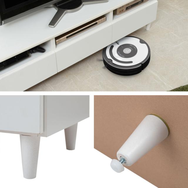 約10cmと高めの脚部なので、お掃除も楽に行えます。掃除機やモップ等もかけやすく、お掃除ロボットが通ることができるのも嬉しいポイントです。また、脚裏はアジャスター付きで、多少ガタつきのある場所でも微調整でき、安定してお使いいただけます。