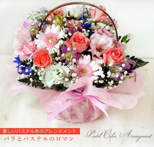 バラとパステルのロマン 翌日配送 トルコキキョウ 花 生花 アレンジメント プレゼント ギフト 贈り物 フラワーギフト 誕生日 お見舞い お祝い