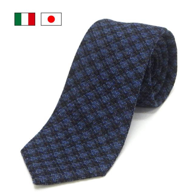 イタリー生地使用/京都産 ネクタイ ウールタイ 紺系 チェック柄 KYOTO VINTAGE メール便OK KV-Lani04