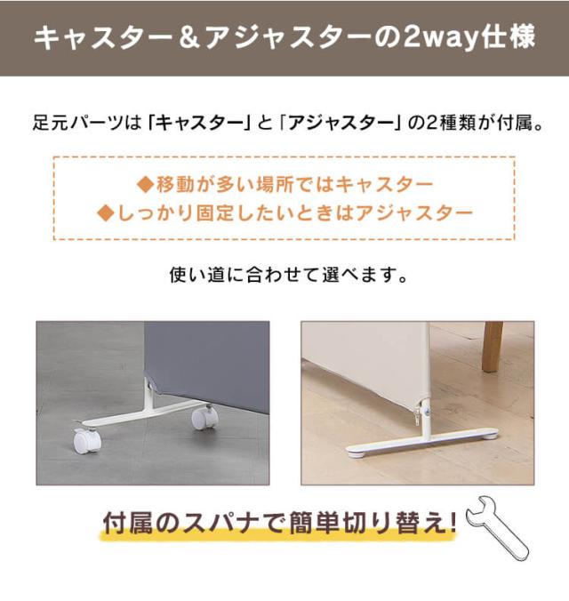 足元パーツは「キャスター」と「アジャスター」の2種類が付属。