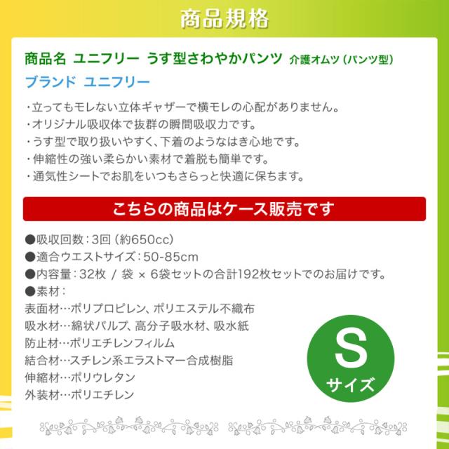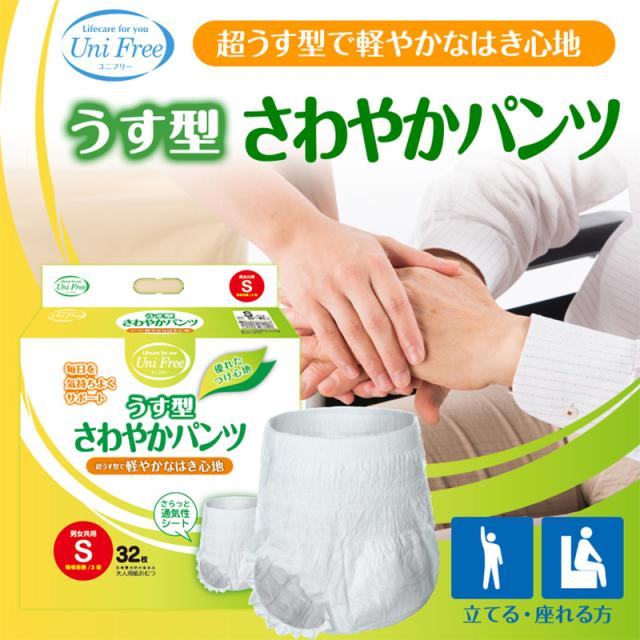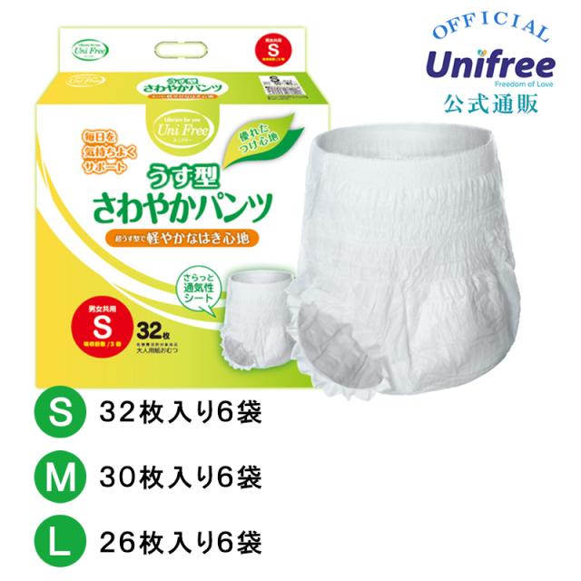 うす型さわやかパンツ S M L 32枚 30枚 26枚 6袋 192枚 180枚 156枚 尿とりパッド 尿取りパット 尿取りパッド 男性用 女性用 全部 80cc 大人用 紙おむつ 紙オムツ s m l テープ パンツ ユニフリー unifree