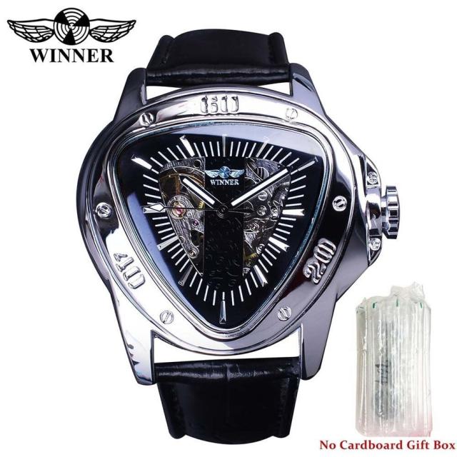WINNER レーシングデザイントライアングルデザインシルバースケルトンダイヤルメンズ Black Silver No Box