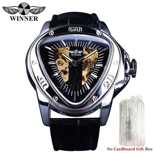 WINNER レーシングデザイントライアングルデザインシルバースケルトンダイヤルメンズ Black Silver No Box